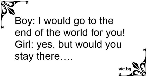 Boy: I would go to the end of the world for you!