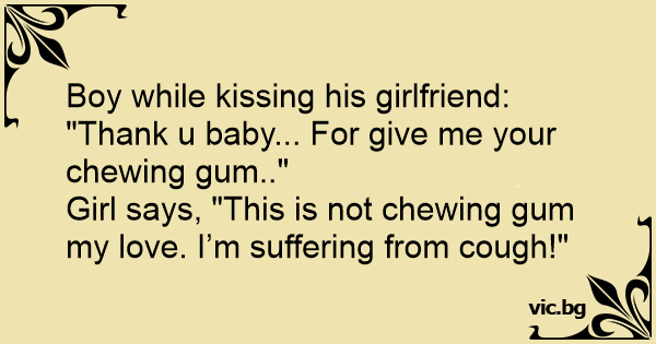 Due adolescenti sono seduti a sbaciucchiarsi su una panchina. Lei: “Ehi, credo di avere inghiottito il tuo chewing-gum !”. Lui: “No, non ti preoccupare, sono solo un po’ raffreddato…”