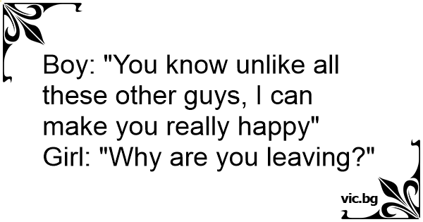 Boy: "You know unlike all these other guys, I can make you really happy"