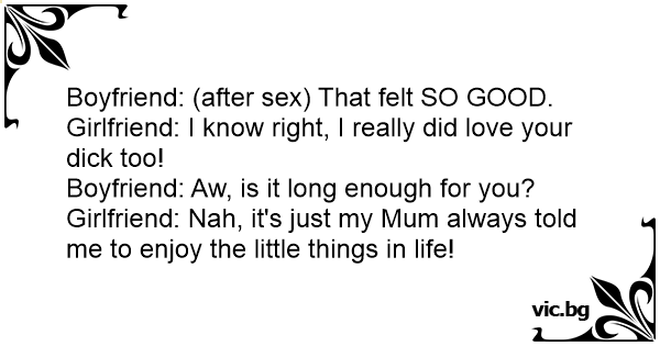 Girlfriend: Nah, it's just my Mum always told me to enjoy the little things in life!