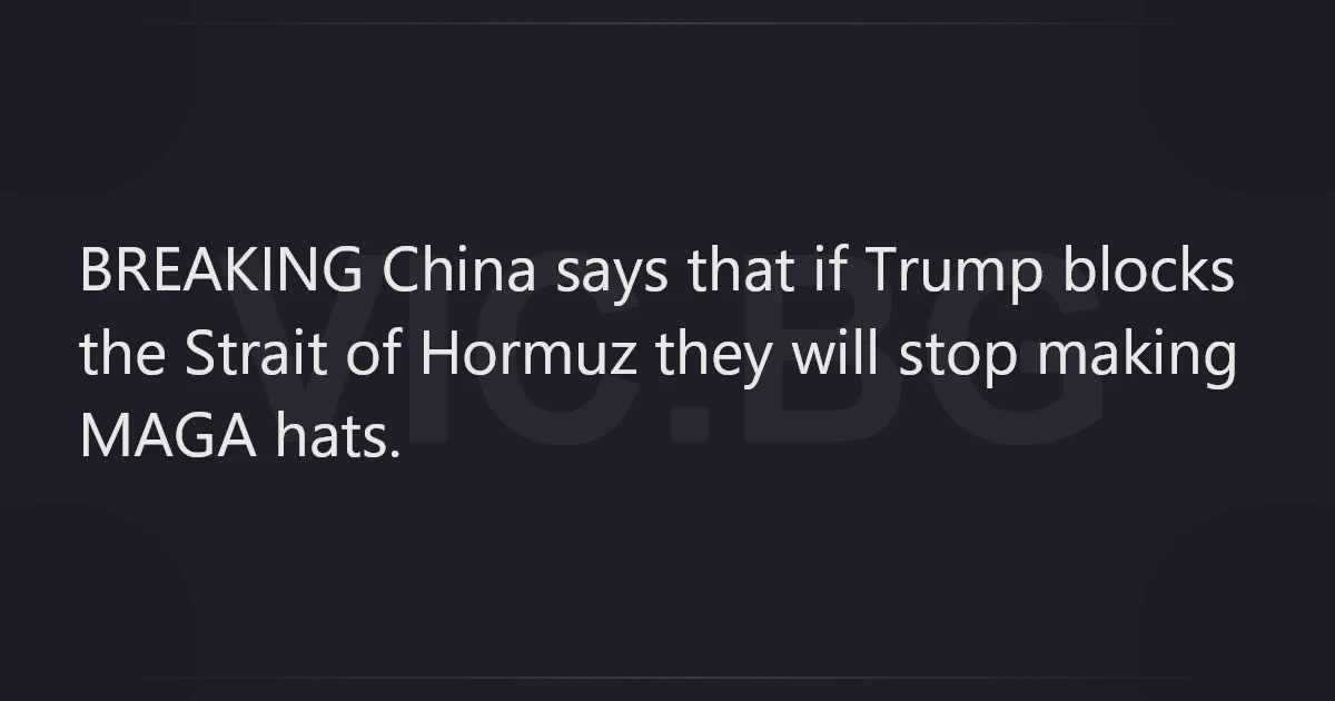 BREAKING China says that if Trump blocks the Strait of Hormuz they will stop making MAGA hats.