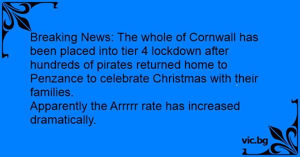 Breaking News: The whole of Cornwall has been placed into tier 4 lockdown after hundreds of pirates returned home to Penzance to celebrate Christmas with their families.