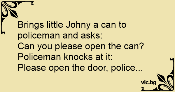 Brings little Johny a can to policeman and asks: