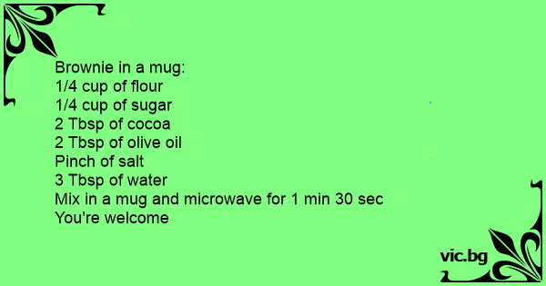 Brownie in a mug: 1/4 cup...