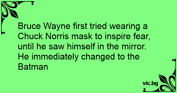 Bruce Wayne first tried wearing a Chuck Norris mask to inspire fear, until he saw himself in the mirror.