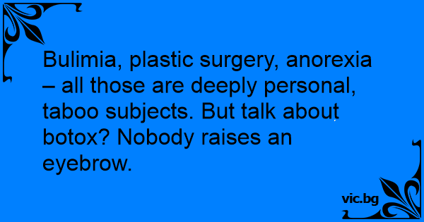 Bulimia, plastic surgery, anorexia – all those are deeply personal, taboo subjects. But talk about botox? Nobody raises an eyebrow.
