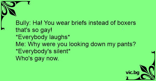 Bully: Ha! You wear briefs instead of boxers that's so gаy!