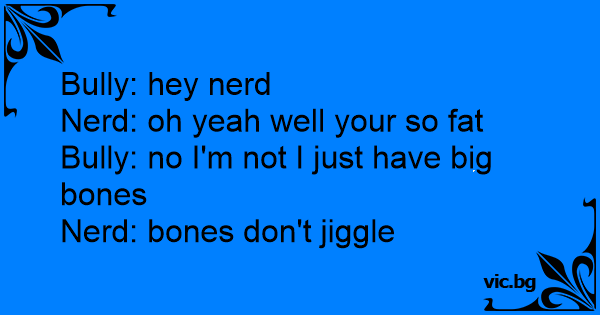 Nerd: oh yeah well your so fат Bully: no I'm not I just have big bones