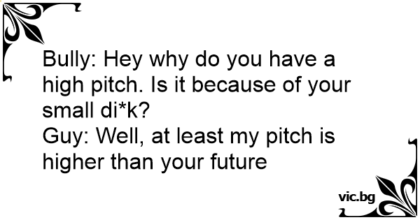 Bully: Hey why do you have a high pitch. Is it because of your small di*k?