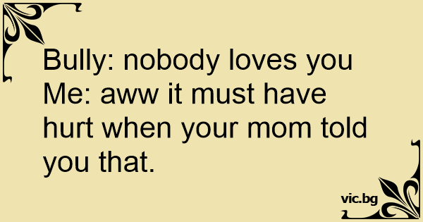 Me: aww it must have hurt when your mom told you that.