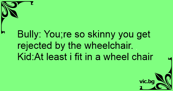 Bully: You;re so skinny you get rejected by the wheelchair.