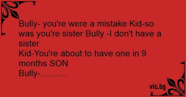 Bully- you're were a mistake Kid-so was you're sister Bully -I don't have a sister