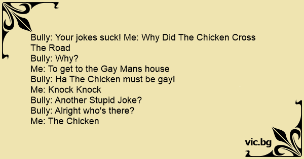 Bully: Your jokes suск! Me: Why Did The Chicken Cross The Road