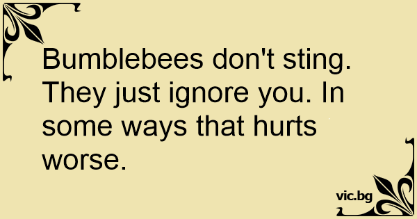 Bumblebees don't sting. They just ignore you. In some ways that hurts worse.