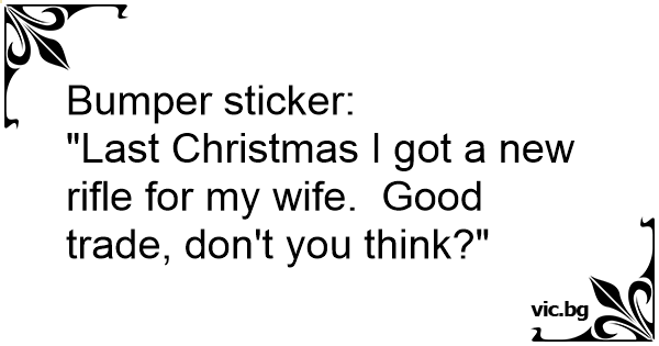 "Last Christmas I got a new rifle for my wife. Good trade, don't you think?"