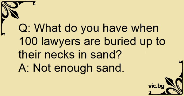 - Vet du vad felet är om du har en advokat som är nedgrävd upp till halsen i sand? - Nä. - För lite sand.