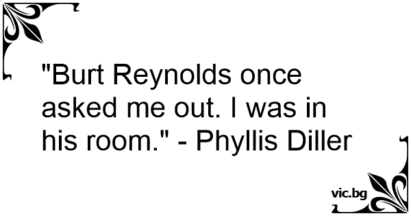 "Burt Reynolds once asked me out. I was in his room." - Phyllis Diller