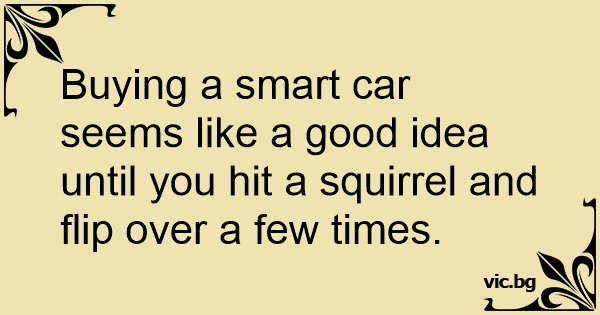 Buying a smart car seems like a good idea until you hit a squirrel and flip over a few times.
