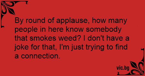 By round of applause, how many people in here know somebody that smokes wееd? I don't have a joke for that, I'm just trying to find a connection.