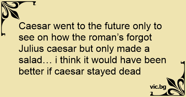 Caesar went to the future only to see on how the roman’s forgot Julius caesar but only made a salad… i think it would have been better if caesar stayed dead
