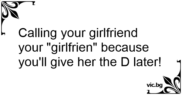 Calling your girlfriend your "girlfrien" because you'll give her the D later!