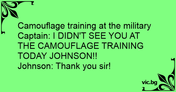 Captain: I DIDN'T SEE YOU AT THE CAMOUFLAGE TRAINING TODAY JOHNSON!!