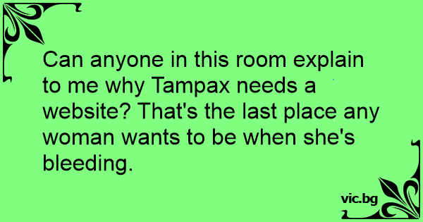 Can anyone in this room explain to me why Tampax needs a website? That's the last place any woman wants to be when she's bleeding.