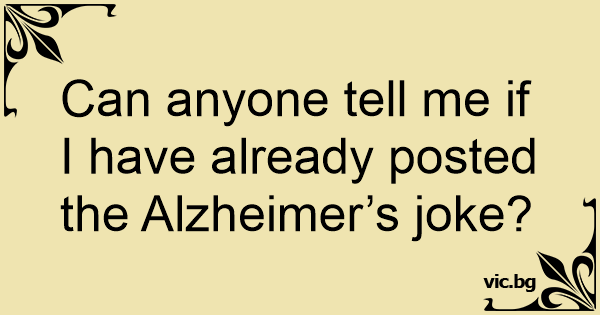 Can anyone tell me if I have already posted the Alzheimer’s joke?