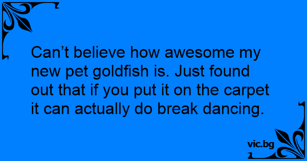 Can’t believe how awesome my new pet goldfish is. Just found out that if you put it on the carpet it can actually do break dancing.