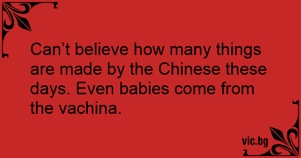 Can’t believe how many things are made by the Chinese these days. Even babies come from the vachina.