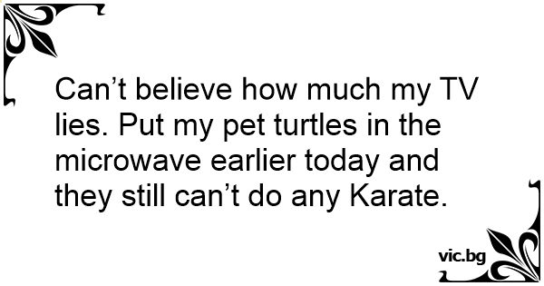Can’t believe how much my TV lies. Put my pet turtles in the microwave earlier today and they still can’t do any Karate.