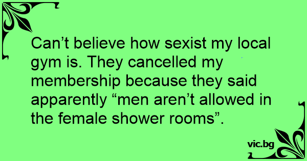 Can’t believe how sexist my local gym is. They cancelled my membership because they said apparently “men aren’t allowed in the female shower rooms”.