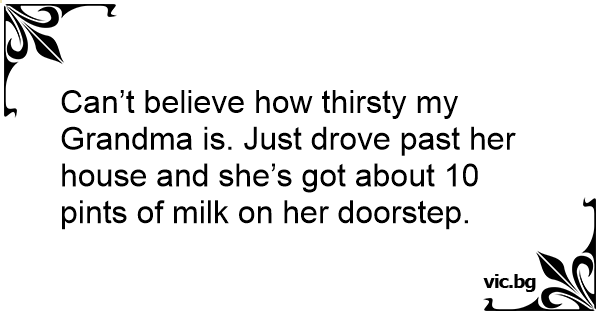 Can’t believe how thirsty my Grandma is. Just drove past her house and she’s got about 10 pints of milk on her doorstep.