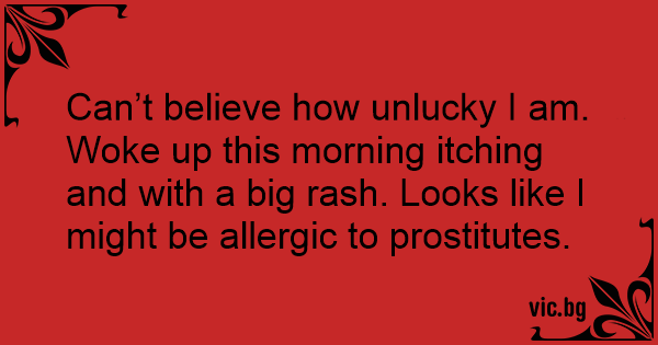 Can’t believe how unlucky I am. Woke up this morning itching and with a big rash. Looks like I might be allergic to prostitutes.