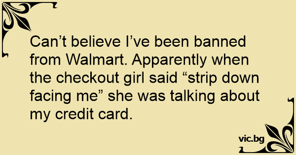 Can’t believe I’ve been banned from Walmart. Apparently when the checkout girl said “sтriр down facing me” she was talking about my credit card.