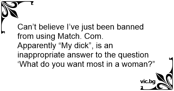 Can’t believe I’ve just been banned from using Match. Com.