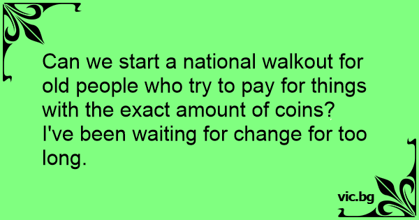 Can we start a national walkout for old people who try to pay for things with the exact amount of coins?