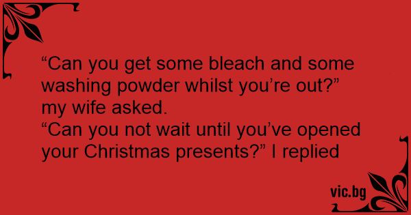 “Can you get some bleach and some washing powder whilst you’re out?” my wife asked. “Can you not wait until you’ve opened your Christmas presents?” I replied