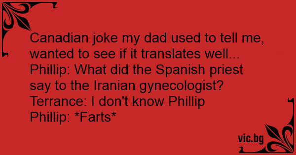 Canadian joke my dad used to tell me, wanted to see if it translates well...
