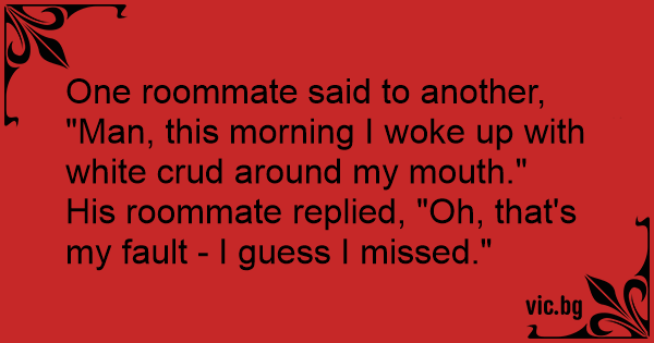 One roommate said to another, "Man, this morning I woke up with white crud around my mouth."