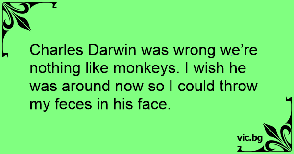 Charles Darwin was wrong we’re nothing like monkeys. I wish he was around now so I could throw my feces in his face.