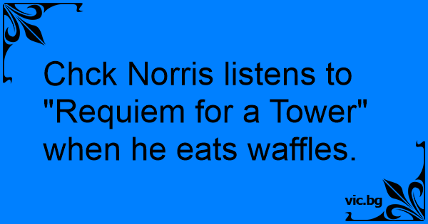 Chck Norris listens to "Requiem for a Tower" when he eats waffles.