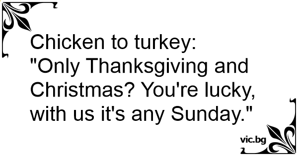 "Only Thanksgiving and Christmas? You're lucky, with us it's any Sunday."