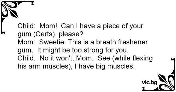 Child: Mom! Can I have a piece of your gum (Certs), please?