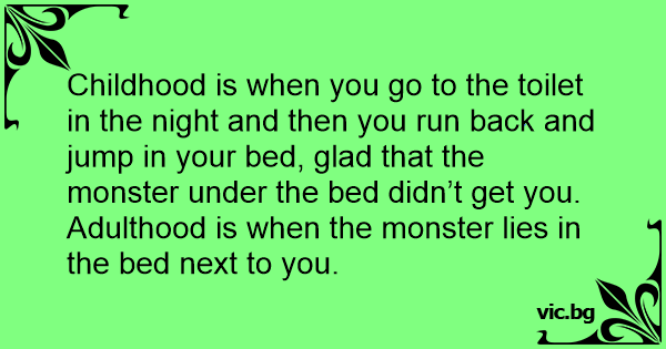 Adulthood is when the monster lies in the bed next to you.