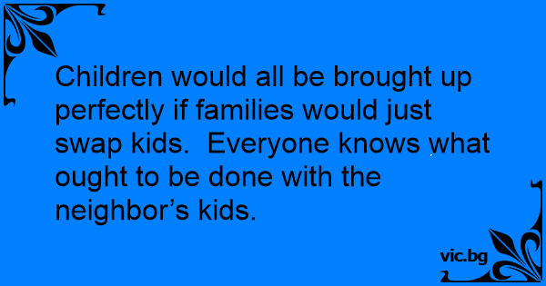 Children would all be brought up perfectly if families would just swap kids. Everyone knows what ought to be done with the neighbor’s kids.