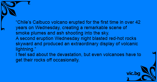 “Chile’s Calbuco volcano erupted for the first time in over 42 years on Wednesday, creating a remarkable scene of smoke plumes and ash shooting into the sky.