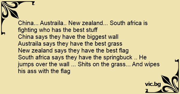 South africa says they have the springbuck .. He jumps over the wall ... Shiтs on the grass... And wipes his аss with the flag