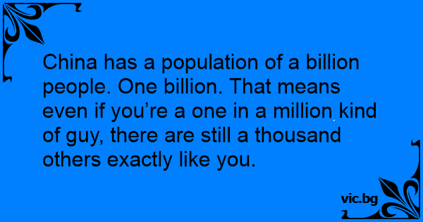 China has a population of a billion people. One billion. That means even if you’re a one in a million kind of guy, there are still a thousand others exactly like you.