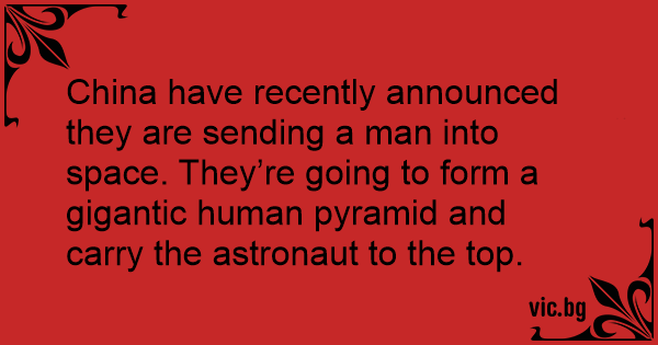 China have recently announced they are sending a man into space. They’re going to form a gigantic human pyramid and carry the astronaut to the top.